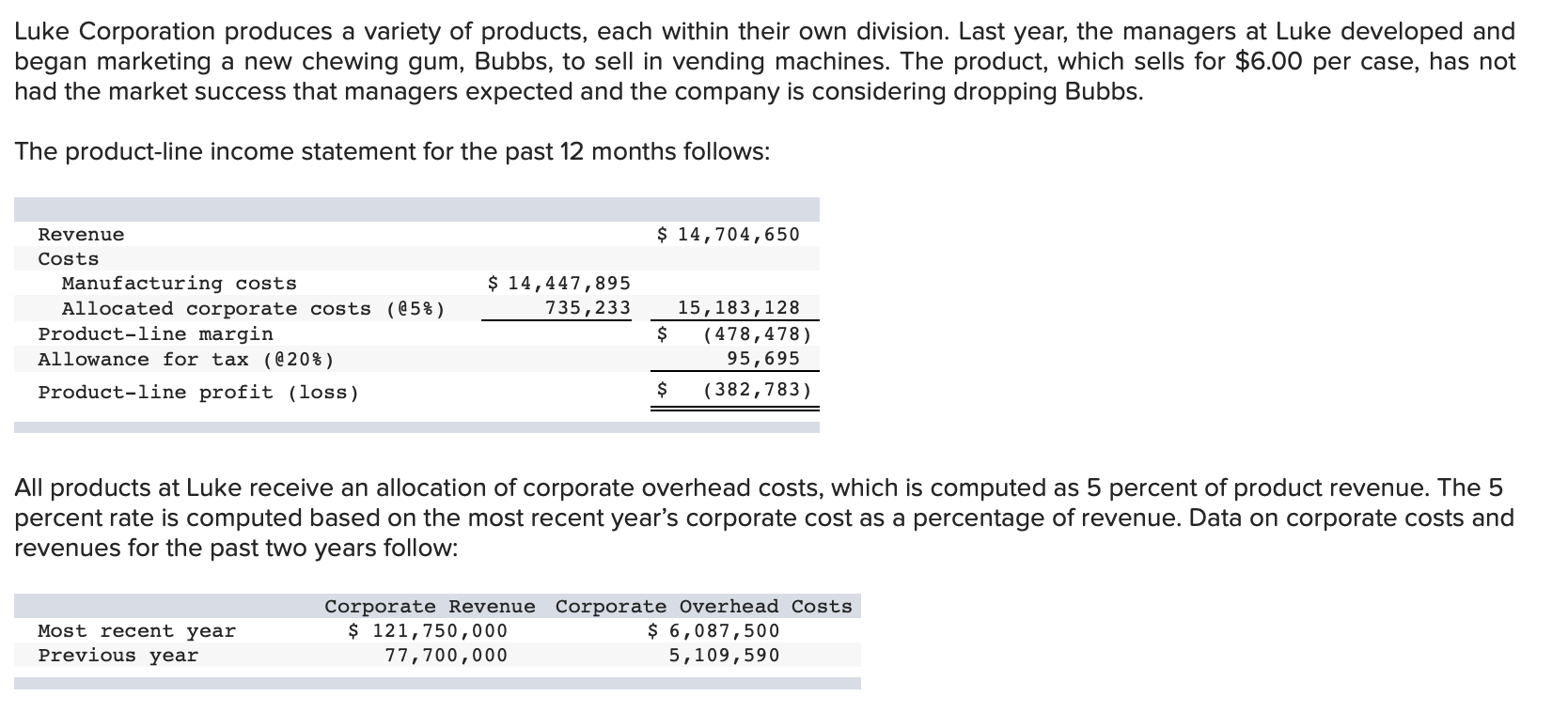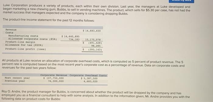 Solved Luke Corporation Produces A Variety Of Products Each Chegg Com